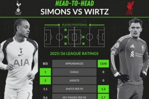 哈維·西蒙斯(熱刺):8次首發(fā)、5次替補(bǔ),1球、2助攻,場(chǎng)均1.1射門(mén)、0.6關(guān)鍵傳球、0.8過(guò)人、傳球成功率82.9%,獲評(píng)6.64分