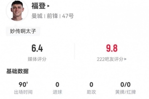 體育資訊12月21日訊 曼城在本輪英超3-0完勝西漢姆,福登本場(chǎng)數(shù)據(jù)如下: