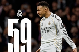 皇馬官方更新社媒動態(tài),曬出海報祝賀姆巴佩,配文:“姆巴佩追平了C羅自然年打進(jìn)59球的紀(jì)錄!”