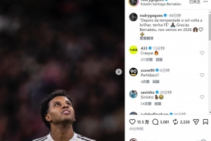 羅德里戈賽后社媒寫道:“‘風(fēng)雨過后,陽(yáng)光總會(huì)重現(xiàn),保持信念????’感謝伯納烏,2026年再見?!?/p>