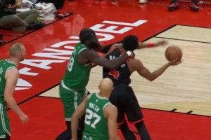 GIF-巴恩斯被科塔拉下隨手一拋命中,主裁判經(jīng)回放判定一級惡意犯規(guī)