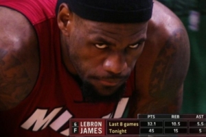 系列賽前5場比賽,熱火以2-3落后,儼然已經(jīng)在懸崖邊上。詹姆斯在G6火力全開,全場26中19,三分4中2,罰球9中5,得到45分15籃板5助攻,率領熱火以98-79擊敗凱爾特人,將系列賽拖至搶七大戰(zhàn)。