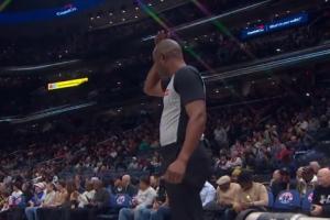 GIF-文班跳球時肘到裁判腦袋 裁判問題不大繼續(xù)執(zhí)裁比賽
