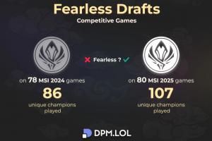 體育資訊7月14日訊?外媒統(tǒng)計全局BP對比賽影響,具體如下:本次MSI 80場比賽107個不同英雄出場,較去年78場比賽86個不同英雄出場顯著增加。