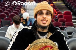 換賽道了!說唱歌手“二球”現(xiàn)場觀戰(zhàn)騎士VS黃蜂 獲贈他哥的球衣~