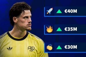 體育資訊12月23日訊 德國(guó)轉(zhuǎn)會(huì)市場(chǎng)曬出圖片,預(yù)熱羅馬門(mén)將斯維拉爾的身價(jià)變化,最新身價(jià)最高可能達(dá)到4000萬(wàn)歐元。