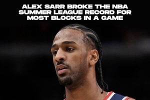 薩爾也打破了夏季聯(lián)賽單場蓋帽數(shù)紀(jì)錄,此前夏聯(lián)單場蓋帽最多是7個。