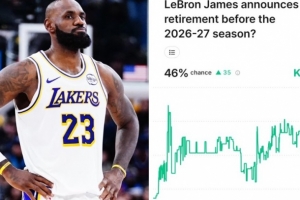 體育資訊12月24日訊 據(jù)美媒Kalshi Sports預(yù)測,最新消息顯示,勒布朗·詹姆斯有46%的可能性在下個賽季開始前宣布退役。他是否會不進行告別巡演就直接退役呢?
