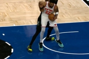 GIF-森林狼挑戰(zhàn)成功!唐斯投籃犯規(guī)改判先夾手臂進攻犯規(guī)