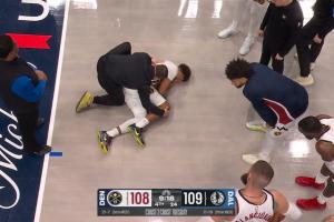 相關(guān)新聞>>>重傷!卡梅隆·約翰遜落地膝蓋外掰痛苦倒地!一瘸一拐提前離場