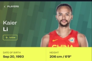 國際籃聯(lián)資料顯示 李凱爾所屬國家隊(duì)為中國男籃