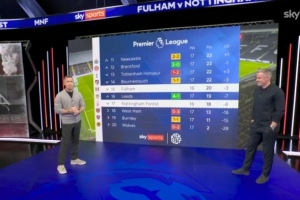 在周一晚上的節(jié)目開始階段,瓊斯再次抓住機會調(diào)侃卡拉格。在天空體育英超頻道的X賬號上分享的一段視頻中,瓊斯說:“今晚杰米·卡拉格獨自一人在這里,這真是個大驚喜,因為幾周前大家還以為他的腿已經(jīng)不行了?!笨ɡ衤牭胶笕滩蛔⌒α似饋?,但瓊斯迅速轉(zhuǎn)移了話題。