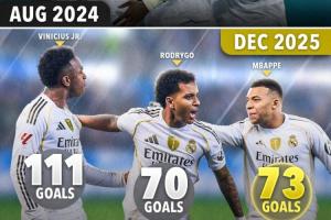 體育資訊12月24日訊 2025年皇馬的全部比賽已經(jīng)結(jié)束,姆巴佩在今年為皇馬打進(jìn)了59球,加盟皇馬至今已經(jīng)收獲73粒進(jìn)球,排名皇馬隊(duì)史射手榜第31位。