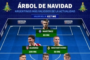 阿根廷身價最高圣誕樹陣容:勞塔羅、阿爾瓦雷斯、恩佐、麥卡在列