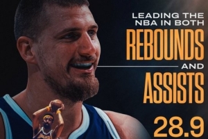 NBA官方配文:“NBA籃板王+助攻王,用‘歷史性’都無(wú)法形容約基奇本賽季的表現(xiàn)??。”
