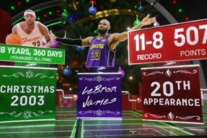 詹姆斯保持著圣誕大戰(zhàn)最年輕出戰(zhàn)紀(jì)錄 此前19次亮相戰(zhàn)績11-8!