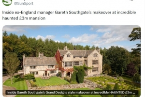 太陽報:索斯蓋特準(zhǔn)備改造其325萬鎊鬧鬼豪宅 但得給蝙蝠留空間