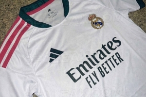 Opaleak曬出2026-2027賽季皇馬主場球衣諜照,該款球衣由阿迪達斯設計,主色調(diào)延續(xù)經(jīng)典的白色,肩部三道杠為粉紅色,領口為圓領設計,與袖口都帶有深綠色鑲邊。