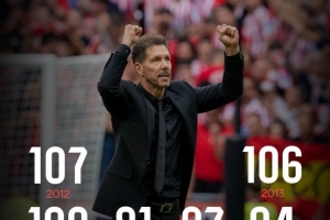 西甲官方曬西蒙尼麾下馬競歷年進球數(shù)量,今年打進112球最多
