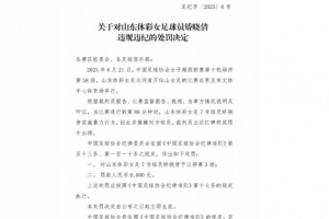 足協(xié)官方消息,山東體彩女足球員矯曉倩被停賽3場(chǎng),罰款6000元。