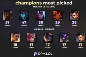 2025年MSI最高選用英雄:芮爾-18,蔚-17,蘭博-17,牛頭-17,趙信-17
