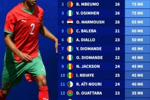 非洲杯球員身價(jià)榜:阿什拉夫8000萬第一,姆伯莫、奧斯梅恩7500萬