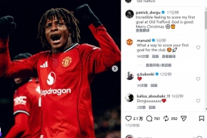 多爾古社媒曬出慶祝進(jìn)球的照片,配文:“在老特拉福德打入首球的感覺(jué)不可思議。上帝眷顧,圣誕快樂(lè)?!?/p>