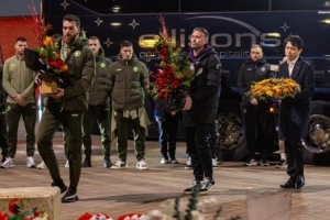 狼隊(duì)球員們比賽前一天晚上來到安菲爾德球場獻(xiàn)花,緬懷因車禍去世的前利物浦球員若塔。