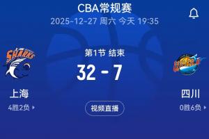 體育資訊12月27日訊 CBA常規(guī)賽第7輪,四川首節(jié)7-32落后上海。