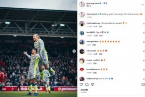 賴因德斯社媒曬慶祝照調(diào)侃:節(jié)日期間要增加的不是體重,而是進球