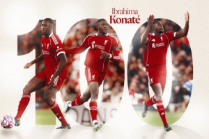 利物浦官方也通過社媒曬出紀念海報祝賀:“科納特在今晚達成了英超100場里程碑。”