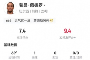 下一篇: 加納喬本場(chǎng)1射0正+2關(guān)鍵傳球 2搶斷2犯規(guī)+5對(duì)抗3成功 獲評(píng)6.9分