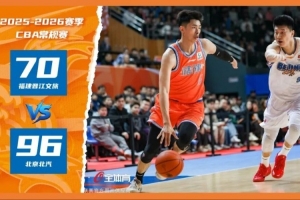 2025-2026賽季CBA常規(guī)賽第7輪焦點(diǎn)戰(zhàn)在祖昌體育館打響,福建晉江文旅男籃坐鎮(zhèn)主場(chǎng)迎戰(zhàn)開(kāi)局六戰(zhàn)全勝的北京北汽男籃。盡管主隊(duì)首節(jié)打出驚艷表現(xiàn),限制北京北汽男籃單節(jié)僅得9分,并領(lǐng)先8分進(jìn)入第二節(jié),但第二、第三節(jié)主隊(duì)未能頂住對(duì)手的強(qiáng)勢(shì)反撲,最終以70-96不敵北京北汽男籃,未能延續(xù)上輪擊敗廣州的勝勢(shì)。四節(jié)比分分別是:17-9,10-31,20-31,23-25(福建晉江文旅男籃在前)。