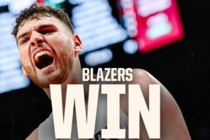 賽后,開拓者官方發(fā)布贏球海報,克林根怒吼瞬間成為封面!