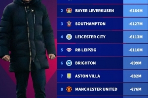 體育資訊12月30日訊 2025年即將結(jié)束,德國轉(zhuǎn)會(huì)市場盤點(diǎn)了這一年俱樂部身價(jià)下跌情況,皇家社會(huì)下跌1.77億歐居首,曼聯(lián)下跌7600萬歐第8。