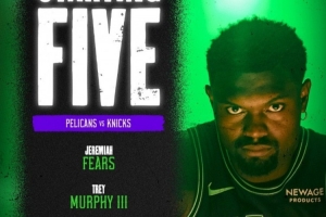 體育資訊12月30日訊 鵜鶘今天在主場(chǎng)迎戰(zhàn)尼克斯,賽前首發(fā)陣容出爐: