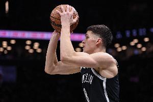 上半場,籃網(wǎng)8號秀杰明外線開炮,打了15分鐘7投4中,三分6中4拿到12分1籃板2助攻,正負值+9。