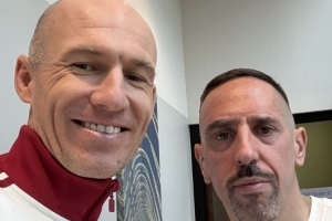 拜仁官方曬出了羅本與里貝里兩位俱樂(lè)部傳奇的“懟臉”自拍合照:傳奇。