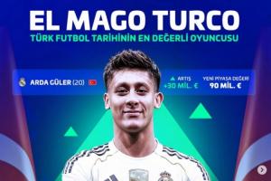 而居萊爾也是第一個達(dá)到9000萬歐元身價的土耳其球員,本賽季這位20歲的皇馬中場出戰(zhàn)25次,貢獻(xiàn)3球7助。