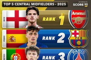 以下是2025年最佳進(jìn)攻型中場(chǎng)前五榜單: