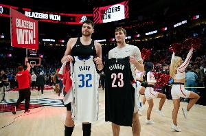體育資訊12月31日訊 昨日開拓者主場125-122險勝獨(dú)行俠,賽后克林根和弗拉格交換了球衣。
