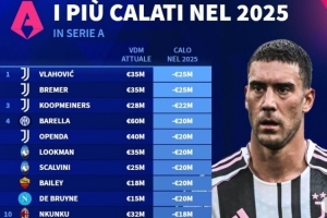 體育資訊1月1日訊 2025年已經(jīng)結(jié)束,《轉(zhuǎn)會(huì)市場(chǎng)》也統(tǒng)計(jì)了意甲年度身價(jià)跌幅榜,弗拉霍維奇和布雷默并列最多。