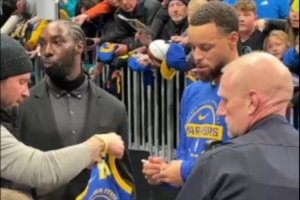 幸無大礙!庫里急停橫移時右腳踝有些扭到 鞋還在地板磨出一道印