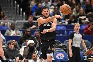 第三節(jié)比賽,上半場狀態(tài)一般的布克終于開始發(fā)力,里突外投連續(xù)取分帶隊追分,他單節(jié)13中7,三分4中2砍下19分2助攻1搶斷。