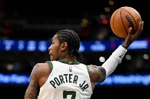 雄鹿球員小凱文·波特上半場狀態(tài)很出色,突破也是相當(dāng)靈動犀利,在字母哥休息期間幫助球隊咬住比分。