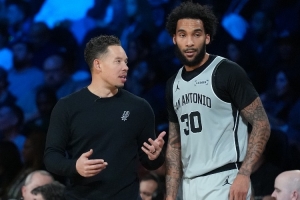 凱爾登后場籃板,尚帕尼追身三分,差5分。此時尚帕尼9個三分球,平馬刺隊史記錄。