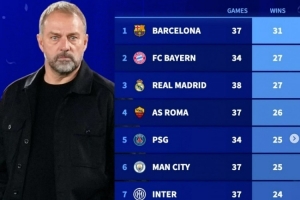 體育資訊1月1日訊 德轉(zhuǎn)盤點(diǎn)了在2025年五大聯(lián)賽中贏球場次榜,其中巴薩37場31勝居首,具體榜單如下: