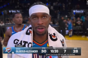 本場比賽,亞歷山大三節(jié)打卡,他出戰(zhàn)28分鐘,投籃20中10,三分球5中3,罰球7中7,拿到30分1籃板7助攻。