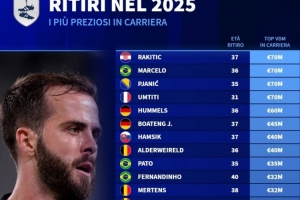 體育資訊1月3日訊 德國轉(zhuǎn)會(huì)市場(chǎng)統(tǒng)計(jì)了2025年退役球員的歷史最高身價(jià),并列出榜單,拉基蒂奇、馬塞洛、皮亞尼奇、烏姆蒂蒂7000萬歐居首。