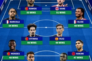 體育資訊1月3日訊 德國轉(zhuǎn)會市場統(tǒng)計了2025年五大聯(lián)賽球員俱樂部+國家隊的勝場數(shù)量,并列出勝場最多陣容,凱恩、奧利塞、阿什拉夫在列。